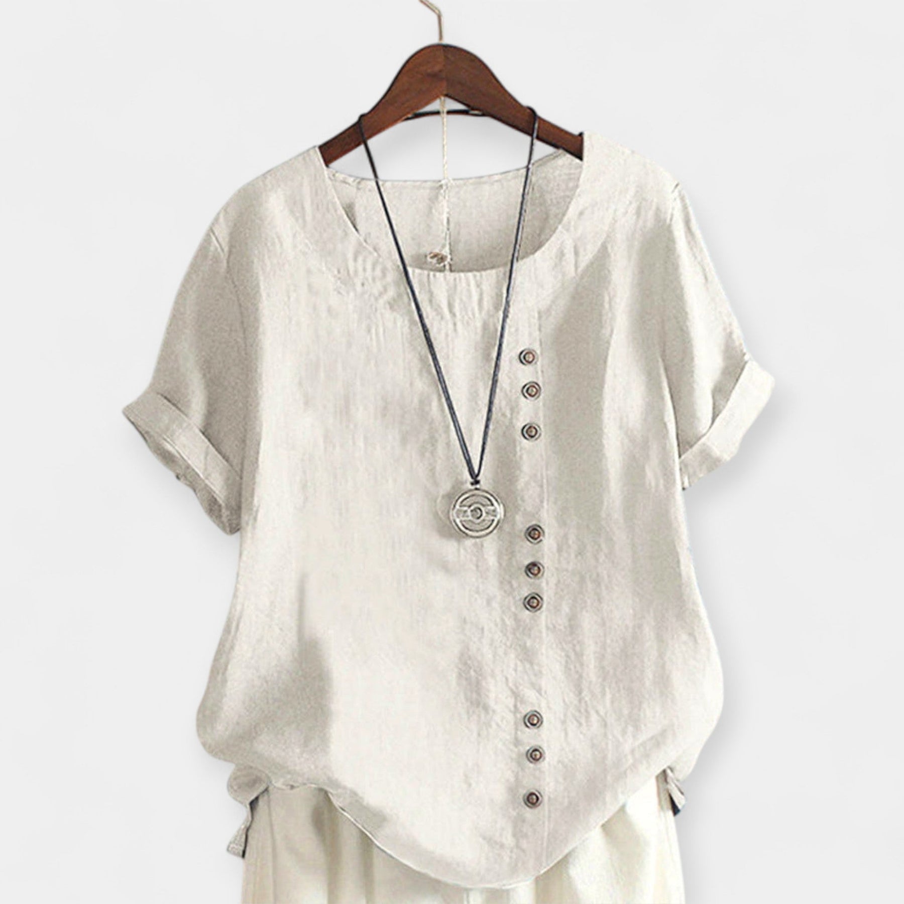 • Κομψό και διαχρονικό design με κουμπιά και στρογγυλή λαιμόκοψη