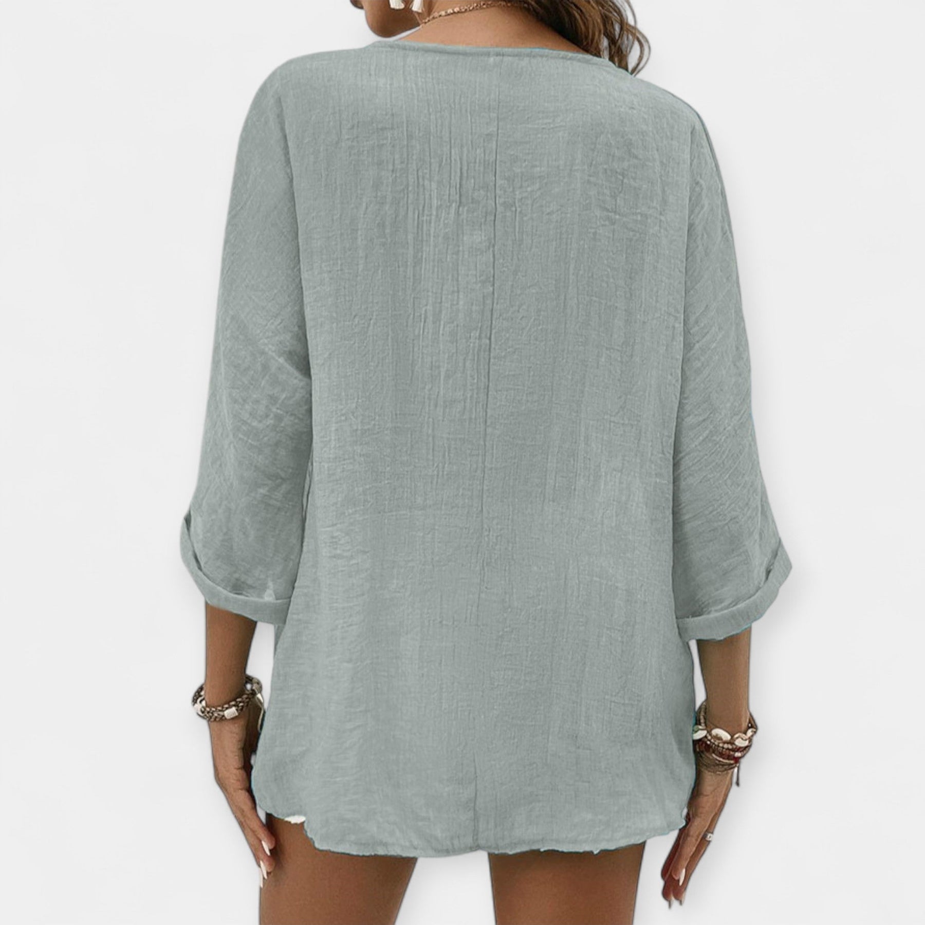 Ανάλαφρο λινό πουκάμισο με V ντεκολτέ, για κομψές και δροσερές καθημερινές εμφανίσεις.