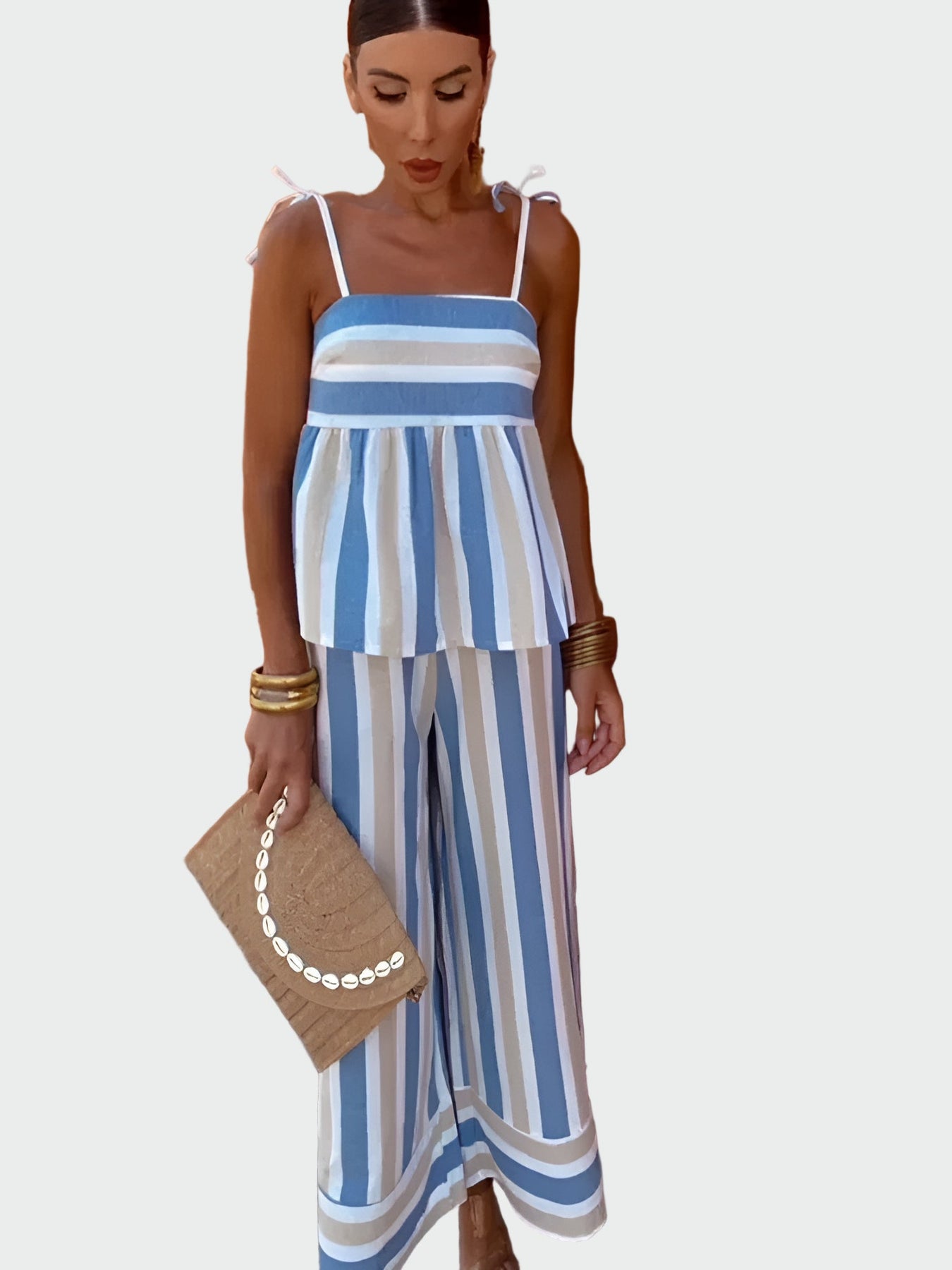 Αναδείξτε το καλοκαιρινό σας στυλ με αυτό το δροσερό σετ που συνδυάζει άνεση και φινέτσα. Ο αέρινος σχεδιασμός του προσφέρει ελευθερία κινήσεων, ενώ οι φωτεινές αποχρώσεις το καθιστούν ιδανικό για τις ζεστές ημέρες.