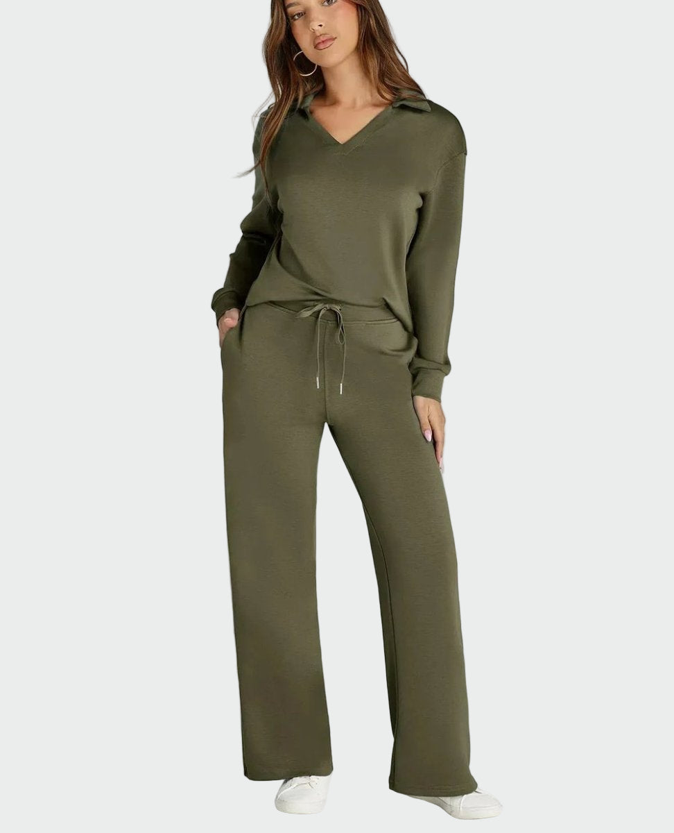 Ένα πρακτικό και κομψό σετ που έχει σχεδιαστεί για άνεση κατά τη διάρκεια των ταξιδιών. Η χαλαρή εφαρμογή του χαρίζει ελευθερία κινήσεων, ενώ το minimal στυλ του το καθιστά ιδανικό για καθημερινή χρήση αλλά και πιο ιδιαίτερες περιστάσεις. Συνδυάζει άνεση και διαχρονική κομψότητα.