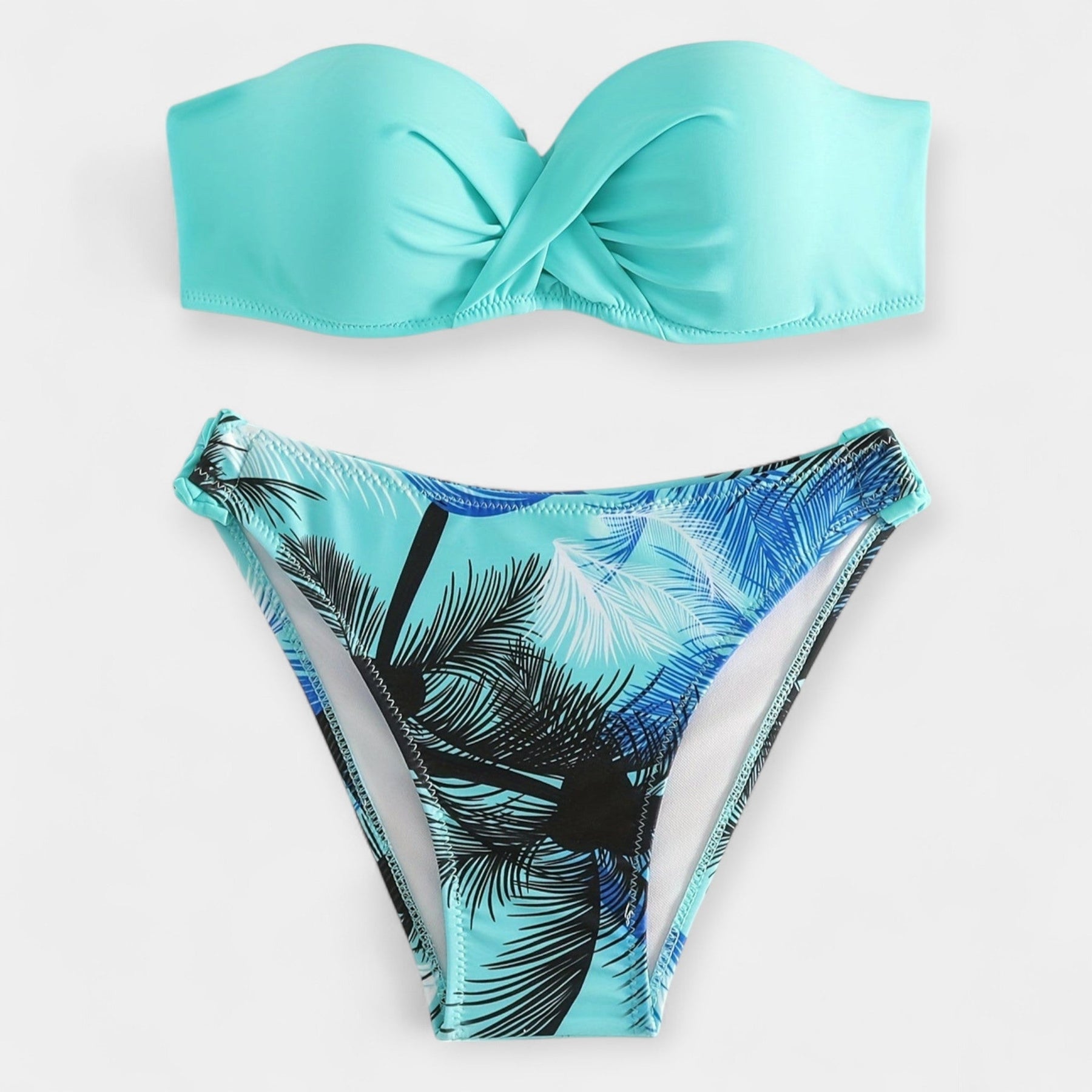 Αυτό το εντυπωσιακό μπικίνι δύο τεμαχίων συνδυάζει εξωτικό στυλ και τολμηρή θηλυκότητα. Με εντυπωσιακά φυτικά μοτίβα, γραβάτα-γραβάτα δέσιμο και ανοιχτή πλάτη, αναδεικνύει τη σιλουέτα και προσφέρει μοντέρνα εμφάνιση για κάθε καλοκαιρινή περίσταση.
