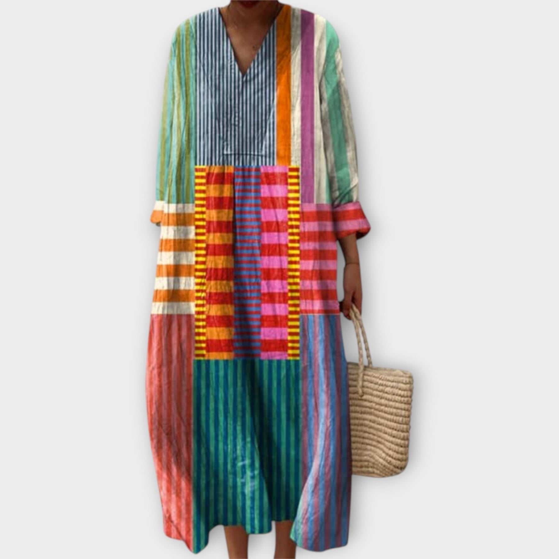 Αναδείξτε την ξεχωριστή σας προσωπικότητα με αυτό το boho φόρεμα που συνδυάζει το δυναμικό ζιγκ-ζαγκ σχέδιο με το ζεστό μουσταρδί χρώμα. Ιδανικό για παραλία, ταξίδια ή urban chic εμφανίσεις.