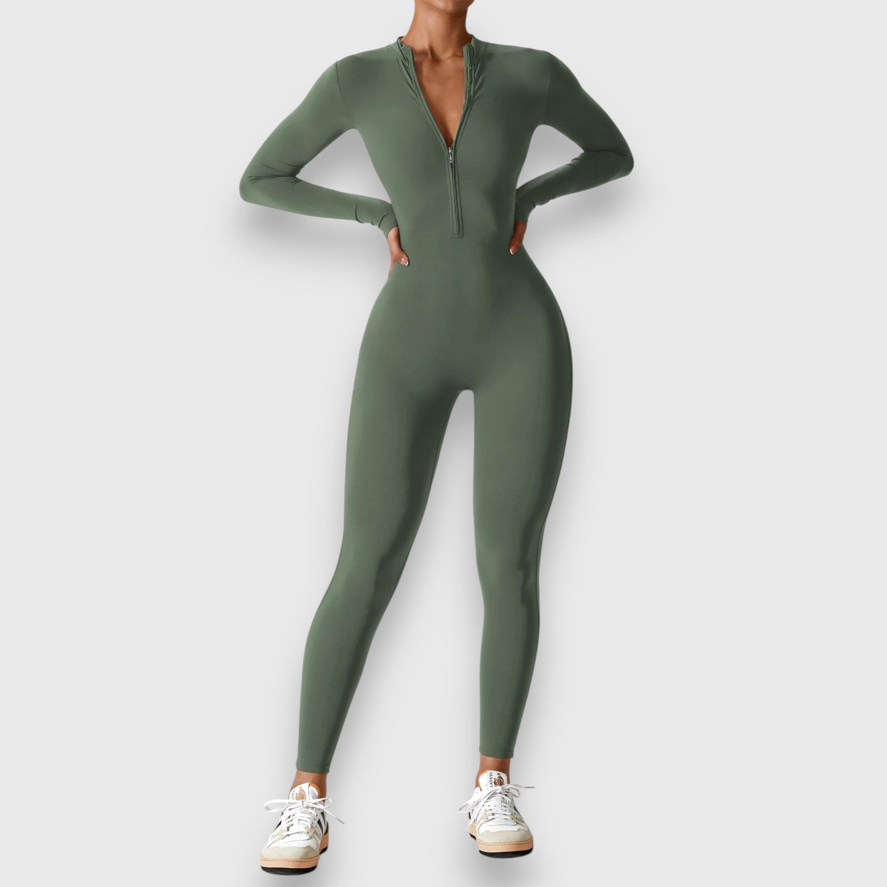 Η ολόσωμη φόρμα Ελιάνα συνδυάζει την κομψότητα και την άνεση σε ένα μοντέρνο σχέδιο. Με το ψηλό γιακά και το πρακτικό φερμουάρ, κάνει μία μοντέρνα δήλωση και είναι ιδανική για κάθε περίσταση.